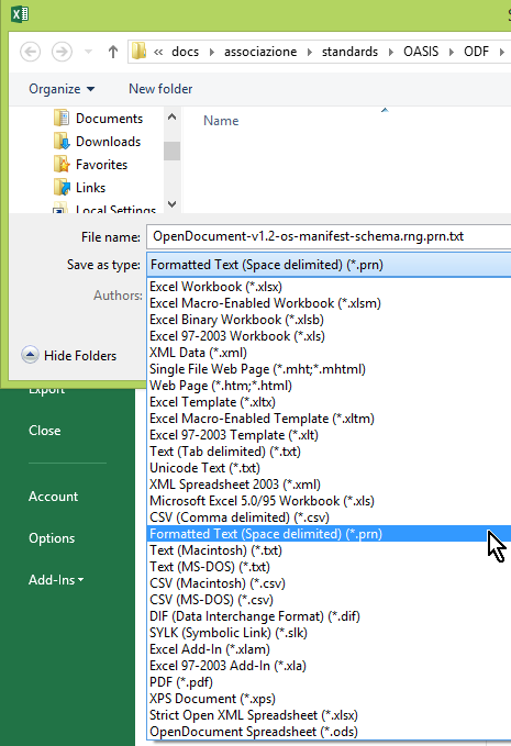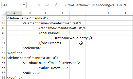 - Hamilton, Dennis E. Open Document v1.2 Manifest Schema plaintext replica spreadsheet. Derived from n140504b3 on 2014-05-11. This Microsoft Office 2013 Excel spreadsheet is the edited form from which n140504d1 was produced